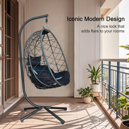 • ONEIN Hanging Egg Chair with Stand for Indoor Outdoor, Imitation Wicker Swing Hammock with Thicken Comfy Cushion for Patio Porch Balcony, Rocking Egg Chair for Bedroom