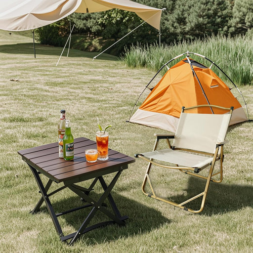• Folding Camping Chair - Lightweight, Portable & Sturdy with Wooden Armrests - Durable Outdoor Chair Camp Seat for Adults, Beach, Picnic, and Patio (Khaki)