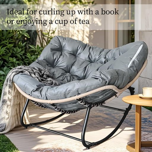 • Papasan Rocking Chair with Cushion for Outdoor Indoor, Oversized Lounge Egg Chair with Steel Frame, Sturdy & Comfy Bedroom Recliner, Patio Furniture (Dark Gray)