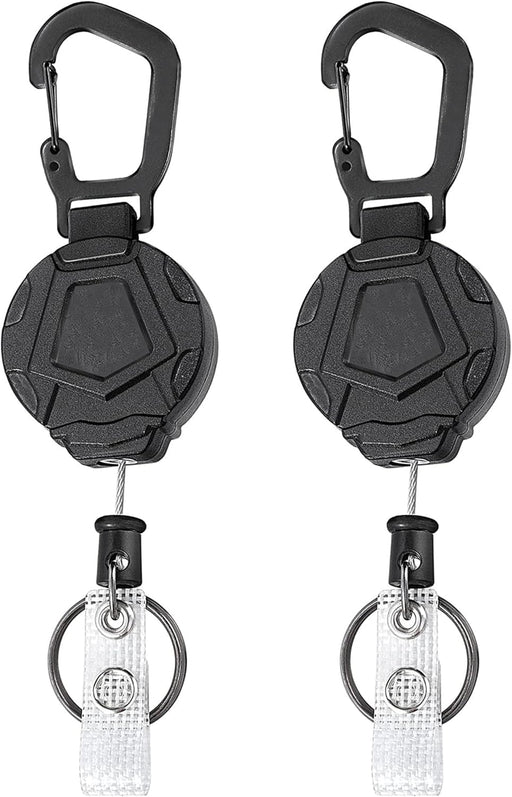 ONEIN Retractable Keychain with Carabiner Clip, Heavy-Duty Badge Reel with Steel Wire Rope, Reinforced ID Holder for Work, Outdoor, and Everyday Use – Pack of 2