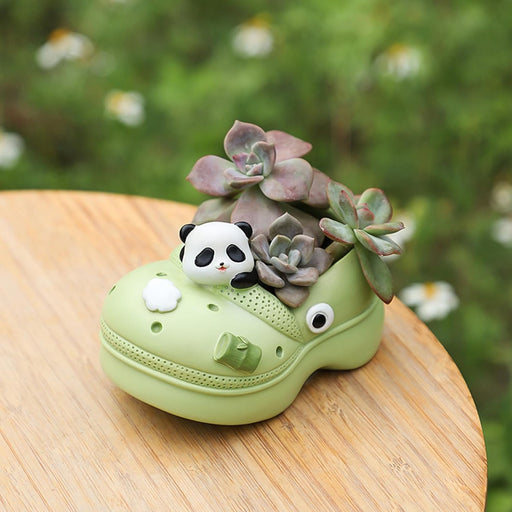 ONEIN Cartoon Panda Flower Pot – Novelty Mini Shoe-Shaped Planter, Succulent Planter with Drainage, Cute Indoor & Outdoor Plant Decor for Windowsill, Balcony, Home, Garden, and Office, Green