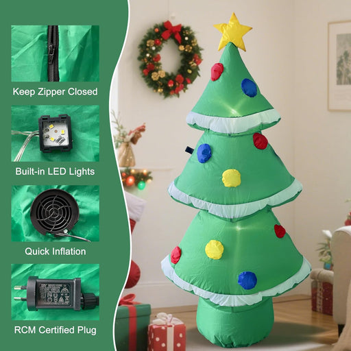 122CM Christmas Inflatables Tree Outdoor Decoration with LED Lights & Colourful Ornaments - Blow Up Xmas Yard Display for Lawn, Garden, Porch, Indoor Party Decor