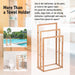 Our bamboo towel rack features a three-bar, stepped-height design that lets you hang multiple towels without them touching. Crafted from eco-friendly bamboo (82cm H x 42cm W x 24cm D), it fits in your bathroom space without requiring wall installation. The natural wooden finish adds a touch of warmth to your decor while offering durability and stability for everyday family use. Say goodbye to damp towels piled on the floor. This freestanding towel stand sets up in minutes and moves easily from the bathroom to the laundry room or poolside as needed. Whether you're drying bath sheets after a shower or airing pool towels on a sunny day, it keeps your linens organized, dry, and within reach for the whole family.