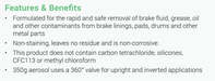 This non-chlorinated cleaner is specifically formulated to quickly and safely remove brake fluid, oil, grease, and other contaminants from metal parts. It effectively cuts through built-up grime and residue without the need for disassembly, making maintenance faster and more efficient .
